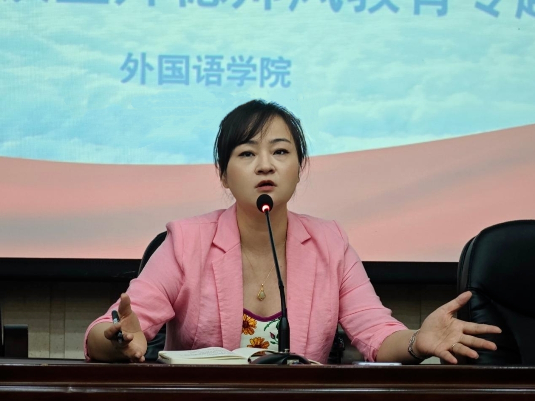 为明确新学期的发展方向,凝聚共识,强化师德师风建设,提升教育教学质量,8月30日上午9:00,外国语学院于外语楼北311报告厅召开2025年下学期第一次全体教师会议暨师德师风教育专题会议,会议由外国语学院党总支书记贺琴琴主持,全体教职工出席本次会议。