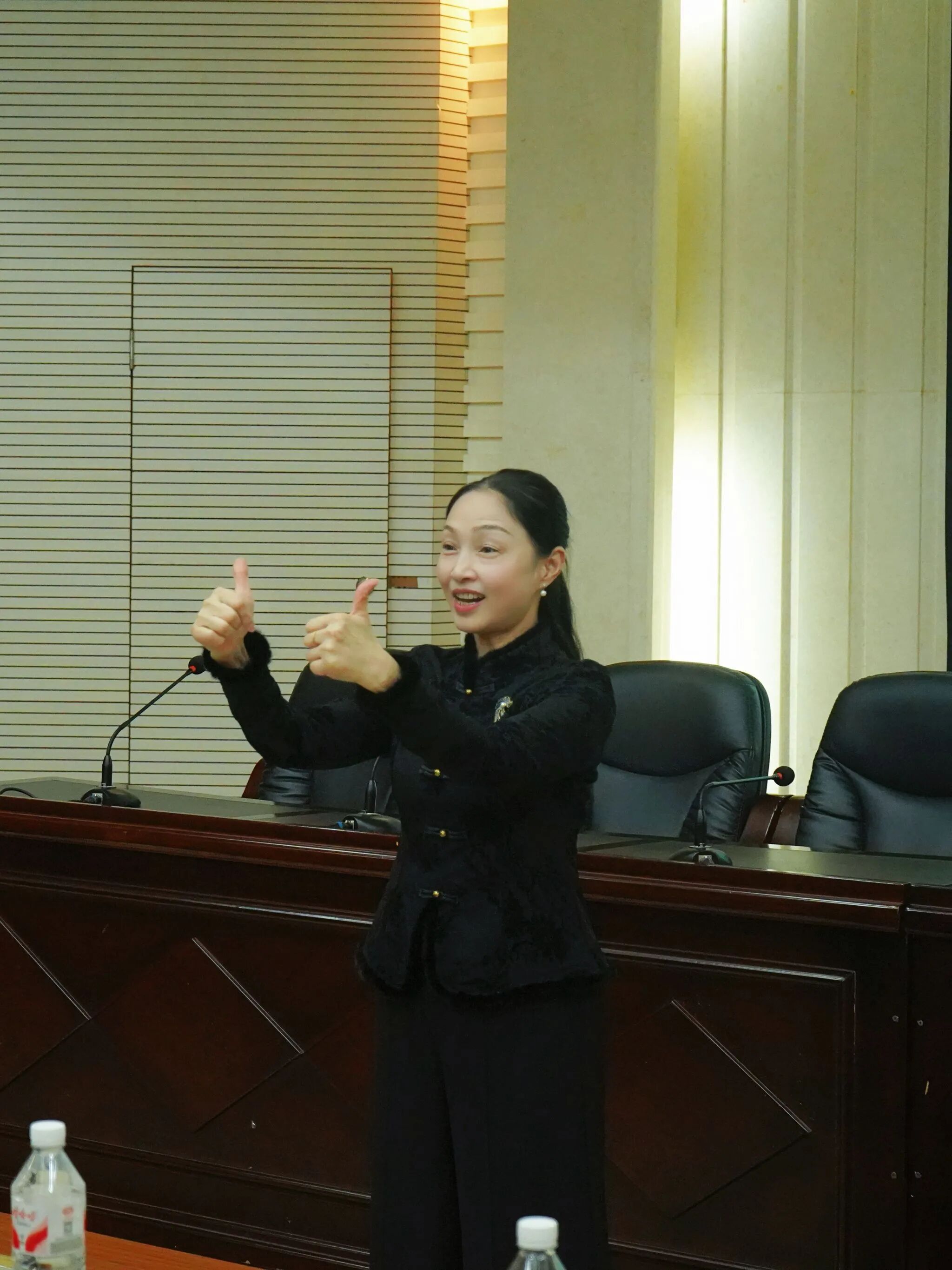 接着,“个人形象精修” 环节干货满满、互动频频!主讲人引用《礼记・玉藻》中的古训,点明 “形象是内在品德的外化名片”,随后以商务场合着装为生动案例,将 “TOP 原则”拆解为易懂好记的实操技巧;从发型与脸型的适配、手部细节的整洁,到站姿 “挺拔如松”、坐姿 “端庄如兰”、走姿 “从容如风” 的仪态要点,主讲人通过趣味礼仪训练、元气微笑手势舞、现场介绍礼实操等形式,让大家在轻松互动中快速掌握核心技能,更深刻理解 “悦己悦人” 的形象礼仪真谛 —— 得体的形象不仅能给他人留下美好印象,更能让自己在人际交往中收获自信与底气。