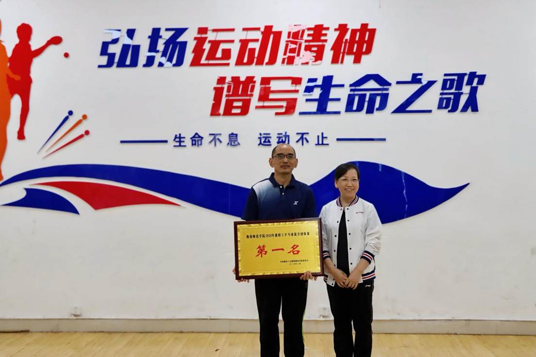 3月28-29日,衡阳师范学院教职工乒乓球混合团体赛在东校区乒乓球馆展开,我院分工会组队参赛。赛场上队员们奋勇拼搏,学院领导现场督战。我院代表队连战连捷闯入决赛,决赛中稳扎稳打力克对手,最终摘得桂冠。据悉,这是我院分工会连续第三次夺得学校乒乓球混合团体赛冠军!