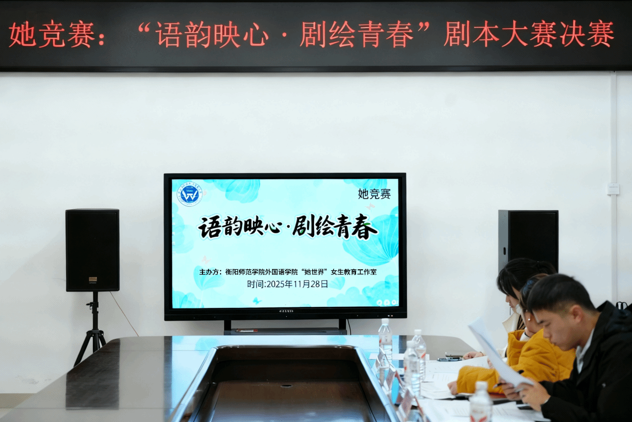 当灯光聚焦舞台,当思绪碰撞火花,由外国语学院“她世界”女生教育工作室发起的“语韵映心·剧绘青春”剧本大赛决赛,于11月28日下午16:30在外语楼南213会议室顺利举行。作为学院“她竞赛”系列品牌活动之一,本次大赛旨在搭建文字创作与自我表达的专属平台,鼓励选手们以剧本为载体,书写青春感悟、传递女性视角下的思考与力量。
